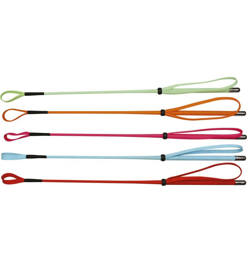 Bacik wykonany z plecionego włókna szklanego pokrytego polipropylenem, z plecioną pętlą i wąską klapką. Metalowe zakończenie. Rozmiar dostosowany dla dzieci - 53cm