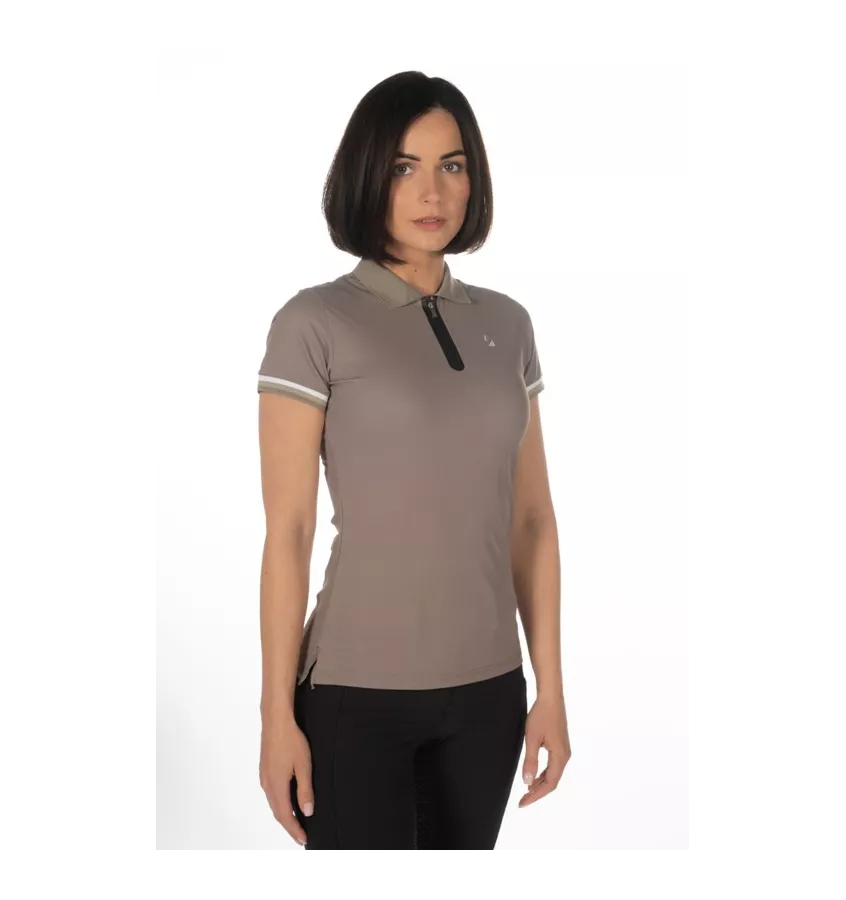Marka Lauria Garrelli prezentuje ekskluzywną i stylową koszulkę dla wymagających kobiet. Oddychający materiał zapewnia wygodę noszenia, a dopasowany krój podkreśla figurę. Sportowy kołnierzyk polo nadaje koszulce klasyczny charakter, a eleganckie mankiety w kontrastowym kolorze nadają jej wyrafinowany wygląd. Mały zamek błyskawiczny w eleganckim czarnym kolorze można otworzyć w razie potrzeby, aby zapewnić dodatkową cyrkulację powietrza. Dzięki zawartości elastanu koszulka zapewnia optymalne dopasowanie i swobodę ruchów - idealna do jazdy konnej i stylowego wyglądu na co dzień.