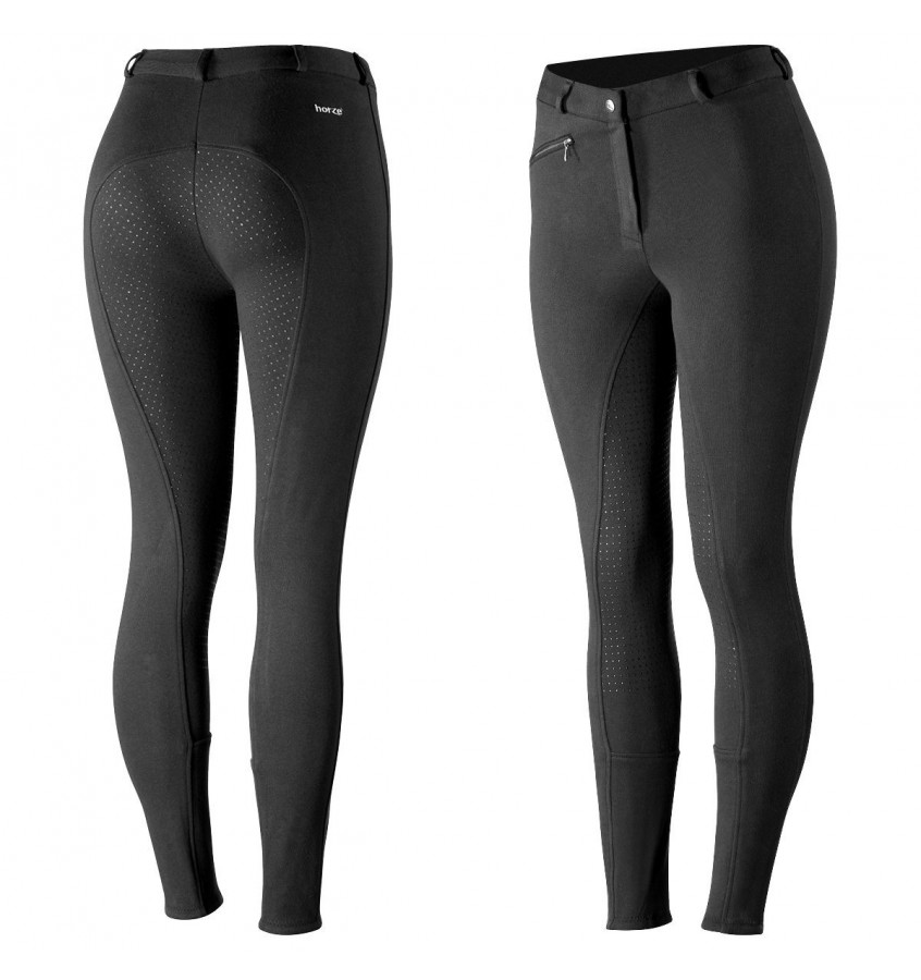 Bryczesy Horze z lejem silikonowym, wykonane z materiału oddychającego i przyjaznego dla skóry. Posiadają elastyczne zakończenie nogawki oraz dwie przednie kieszenie zapinane na zamek. Wykonane z komfortowego i wysokiej jakości materiału typu stretch. Wyposażone w lej z silikonu, który powoduje dobrą przyczepność w siodle.