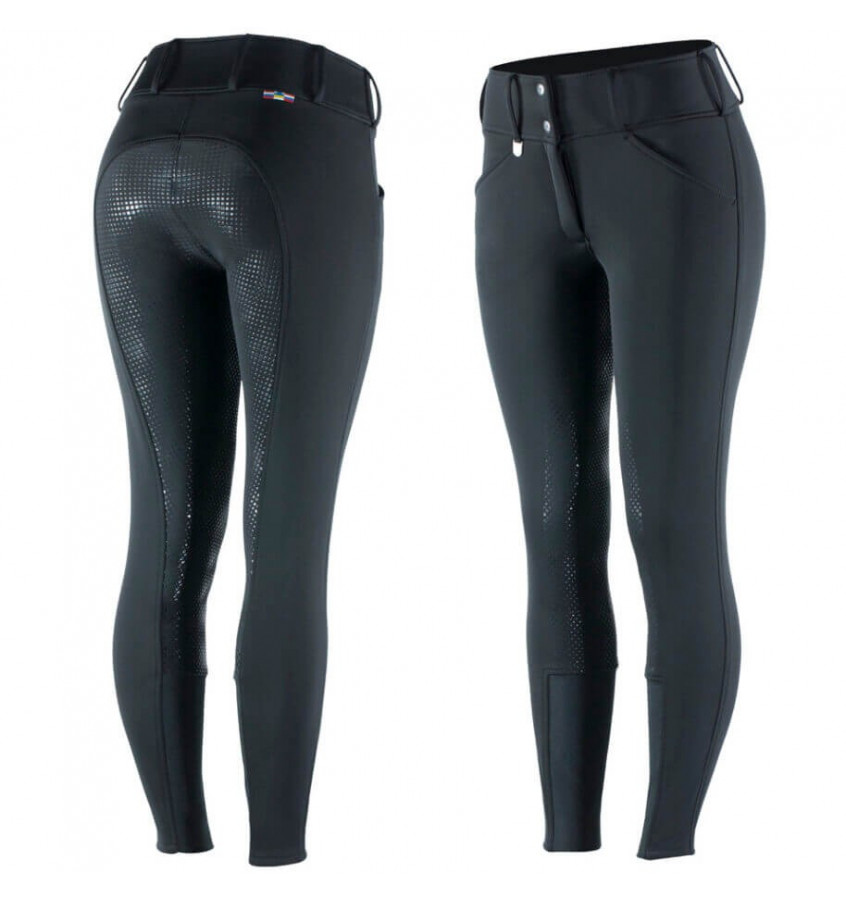 Bardzo wygodne damskie bryczesy wykonane z wysokiej jakości materiałów, oddychające oraz odporne na brud i wodę. Dzięki materiałowi Softshell, idealnie nadają się jako bryczesy zimowe. Posiadają pełen lej silikonowy, który zapewnia bardzo dobrą przyczepność do siodła. Wyposażone w dwie kieszenie z przodu. Nogawki zakończone elastycznymi wstawkami. Proste w pielęgnacji. Można prać w pralce w 30 stopniach, zaleca się prać na lewej stronie. Nie zaleca się suszenia w suszarce.
