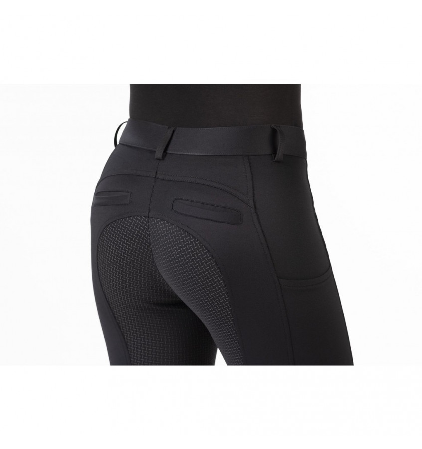 Eleganckie bryczesy Emma od HKM. Wykonane z bardzo elastycznego materiału. Idealnie dopasowują się do ciała. Wyposażone w boczną kieszonkę na telefon. Pełen lej silikonowy dobrze trzyma siodła.