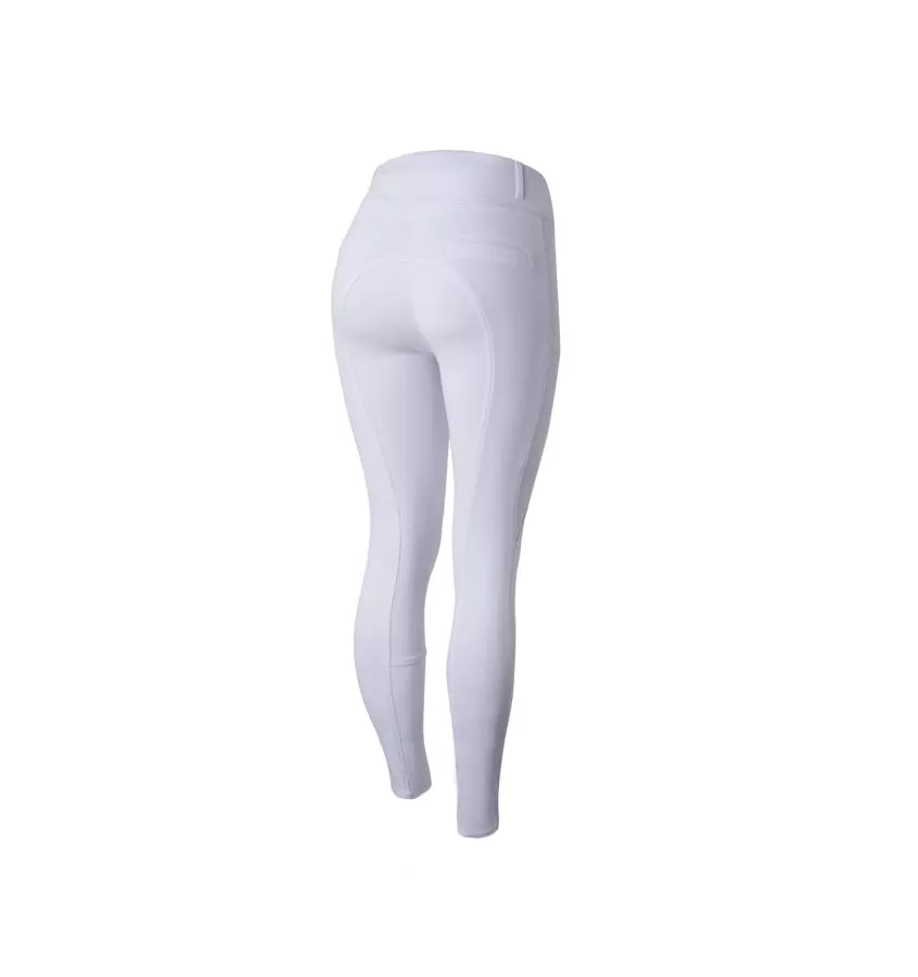 Bryczesy z pełnym lejem do codziennej jazdy. Ten model ma wysoki stan i wygodny, szeroki pas w talii.