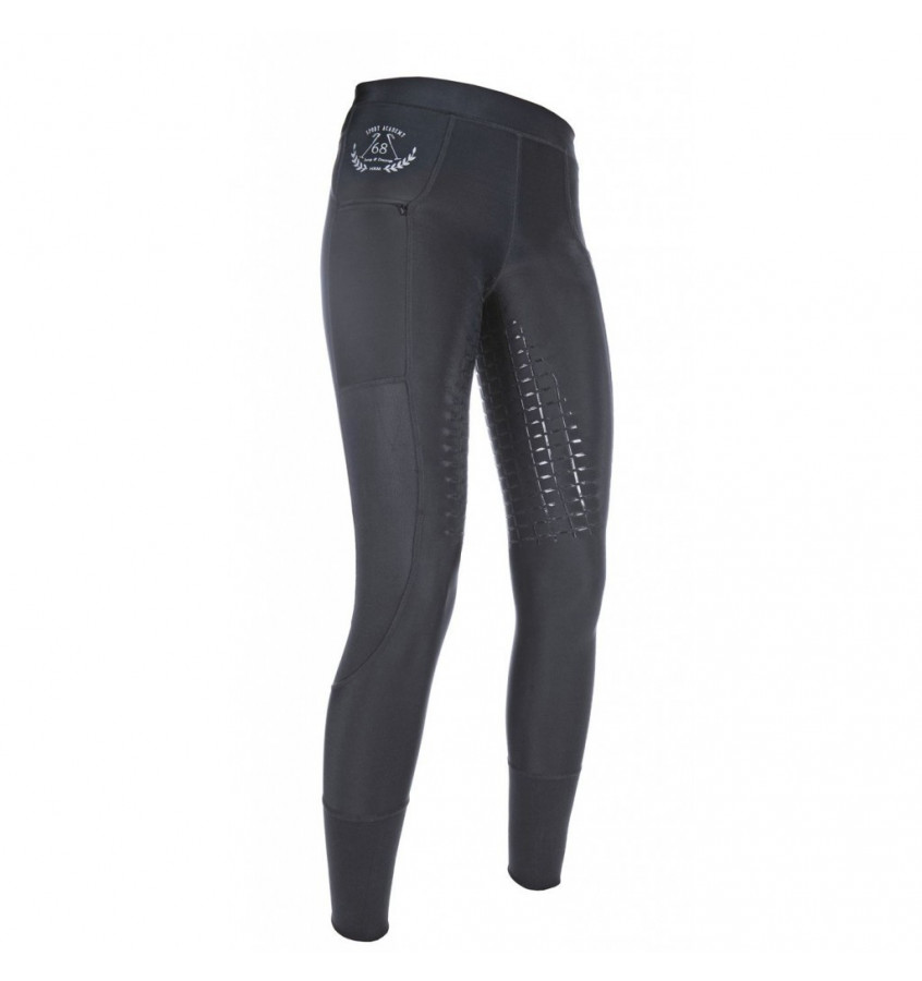 Eleganckie legginsy jeździeckie wykonane z przyjaznego dla skóry materiału. Bi-elastyczny materiał typu stretch sprawia, że spodnie dobrze dopasowują się do sylwetki. Pełen lej silikonowy dobrze trzyma siodła. Leggisny wyposażone są w dwie przednie kieszenie i jedną boczną na telefon komórkowy.