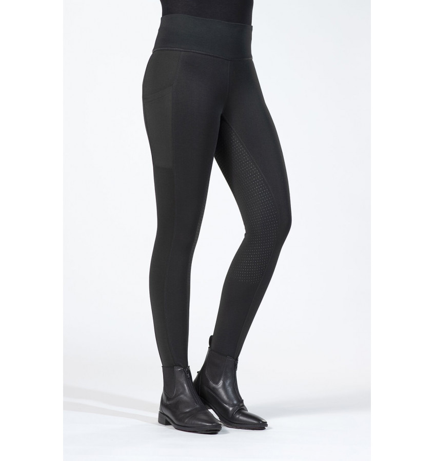 Ocieplane legginsy jeździeckie COSY to idealny wybór na chłodniejsze dni w stajni i treningi w sezonie jesienno-zimowym. Wykonane z wysokiej jakości, bi-elastycznej dzianiny która doskonale dopasowują się do sylwetki, zapewniając pełną swobodę ruchów. Od wewnątrz wykończone są miękkim i przyjemnym w dotyku mikropolarem, który gwarantuje komfort termiczny nawet podczas długiego pobytu na świeżym powietrzu.