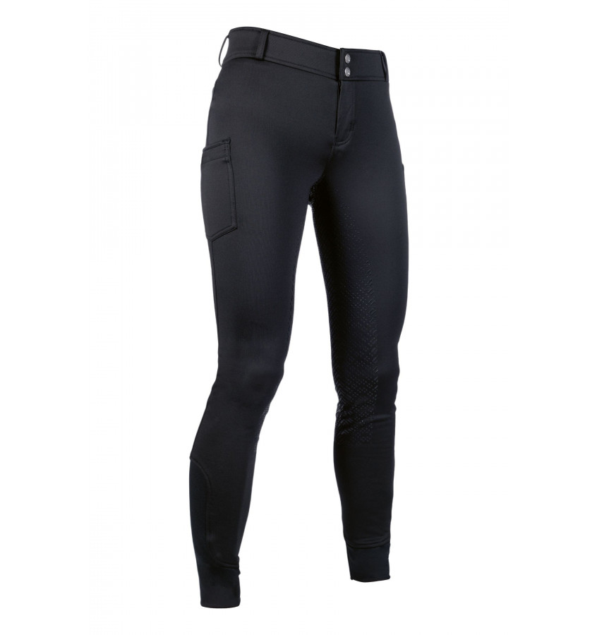 Bryczesy jeździeckie ocieplane miękkim polarkiem z pełnym lejem silikonowym. Wyposażone w dwie boczne kieszenie oraz dwie ozdobne kieszenie z tyłu. Elastyczny materiał.