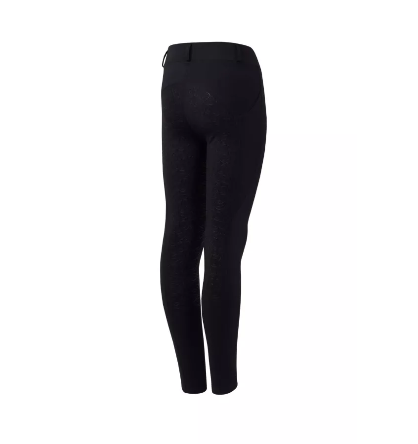 Legginsy Horze Dea to must have na wiosenno-letnie treningi. Elastyczny i dopasowany krój. Wyposażone w szlufki na pasek, które umożliwiają lepsze dopasowanie. Po bokach znajdują się kieszenie na telefon. Pełny lej silikonowy z pięknym wzorem.