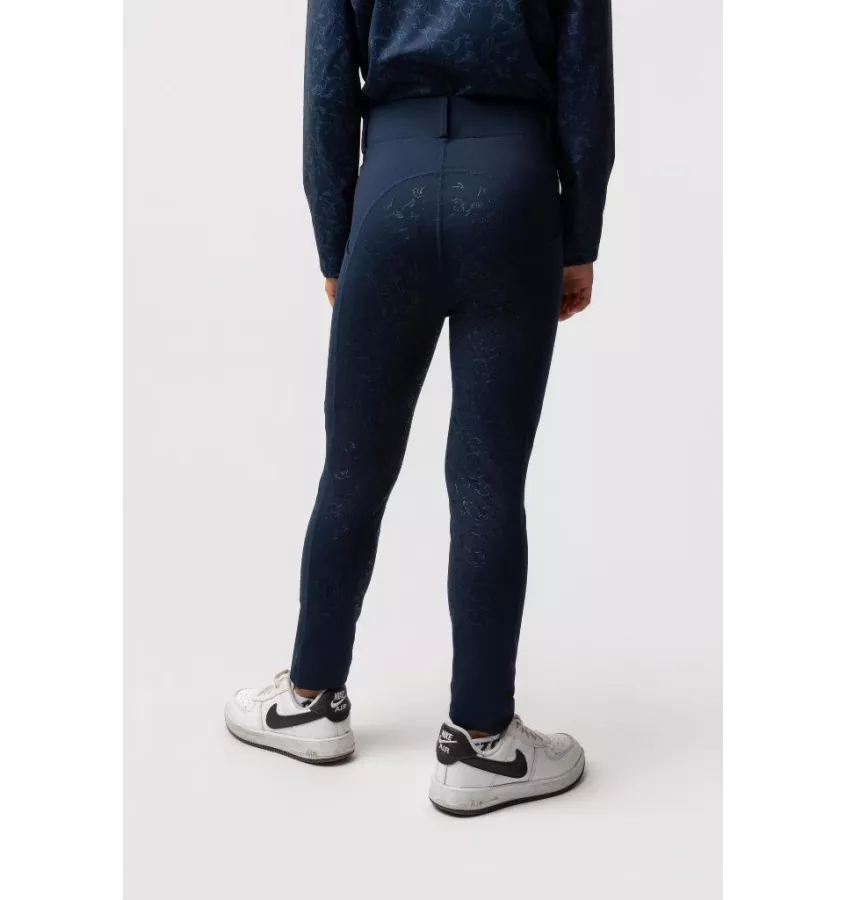 Legginsy jeździeckie w dziecięcych rozmiarach. Stworzone z myślą o zimowych i jesiennych treningach. Wykonane z grubego materiału oddychającego i komfortowego w noszeniu. Dzięki swojej elastyczności nie krępują ruchów. Podszyte drapanym materiałem. Posiadają właściwości szybkoschnące. Pełny lej silikonowy. Szlufki na pasek.