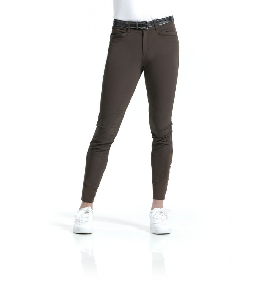 Bryczesy męskie Georg zostały wykonane z bardzo lekkiego i oddychającego materiału. Bryczesy o klasycznym kroju. Są szybko schnące co wpływa na komfort użytkowania. Elastyczne nogawki ozdobiono logo EquiTheme. Posiadają silikonowy lej kolanowy.