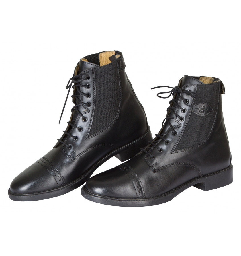 Eleganckie sztyblety do jazdy konne. Wykonane ze skóry naturalnej. Dzięki sznurowaniu łatwiej dopasować je do stopy. Wyposażone w dodatkowy zamek błyskawiczny, dzięki któremu ściąganie obuwia jest prostsze i nie wymaga rozwiązywania sznurowadeł. Posiadają elastyczną wstawkę po bokach.