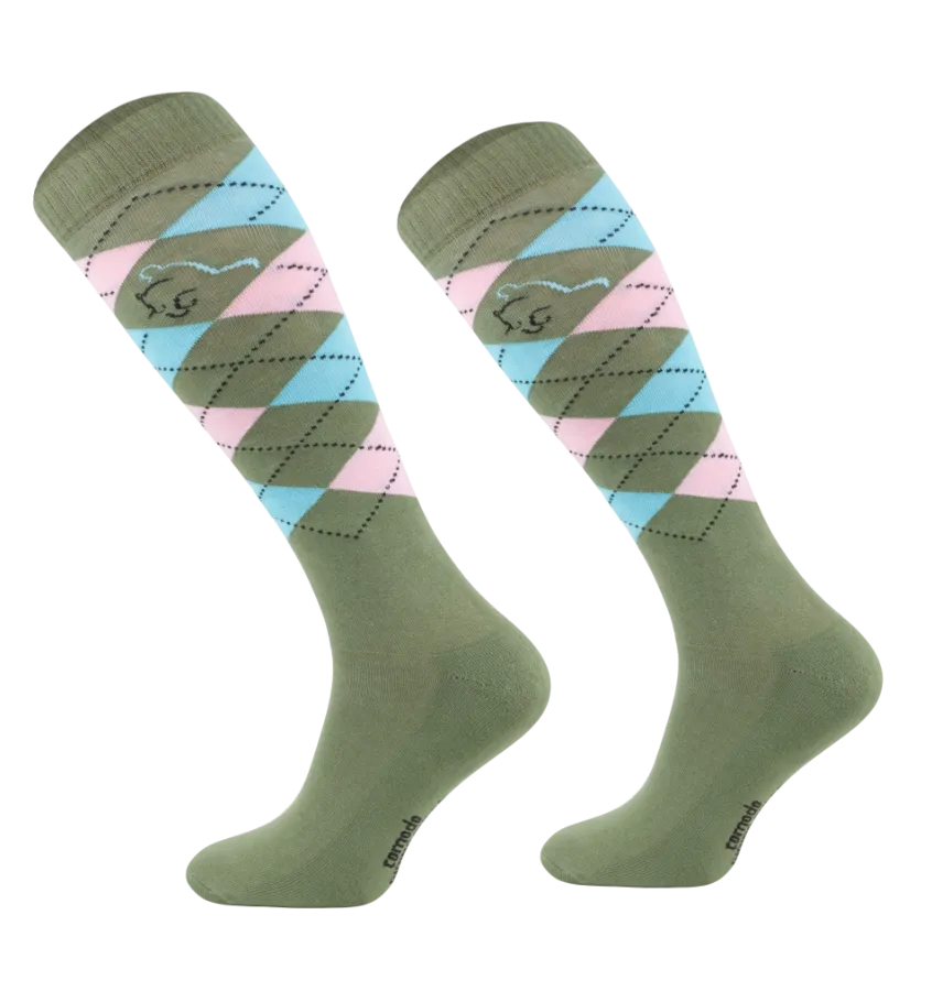 Klasyczne podkolanówki jeździeckie wykonane z najwyższej jakości bawełny z dodatkiem włókien elastycznych. Ściągacz w śródstopiu utrzymuje skarpetę na miejscu. Posiadają wzmacnianą stopę frotte oraz nieuciskający ściągacz.