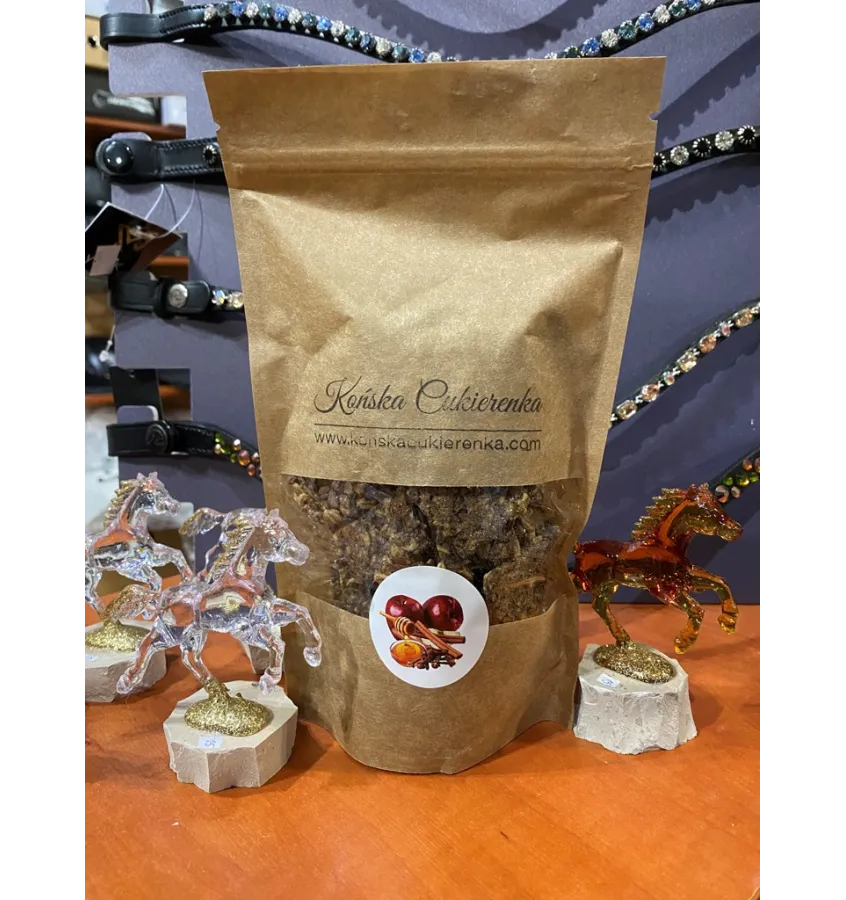 Naturalnym przysmakom dla koni, w których soczyste jabłko łączy się z rozgrzewającymi przyprawami: cynamonem, goździkami i gałką muszkatołową.