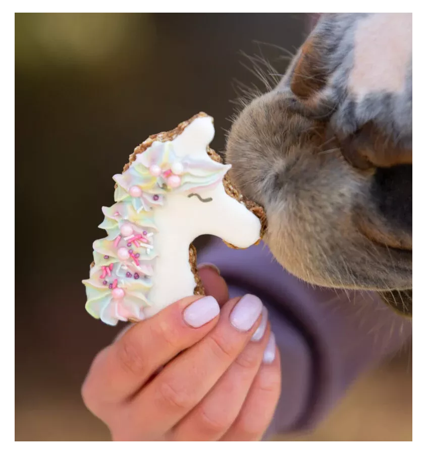 Szukasz smakołyku, który wygląda jak z bajki i smakuje jak marzenie (przynajmniej według koni)? Poznaj jednorożcową perełkę – ręcznie robiony i dekorowany końskie ciasteczko Unicorn