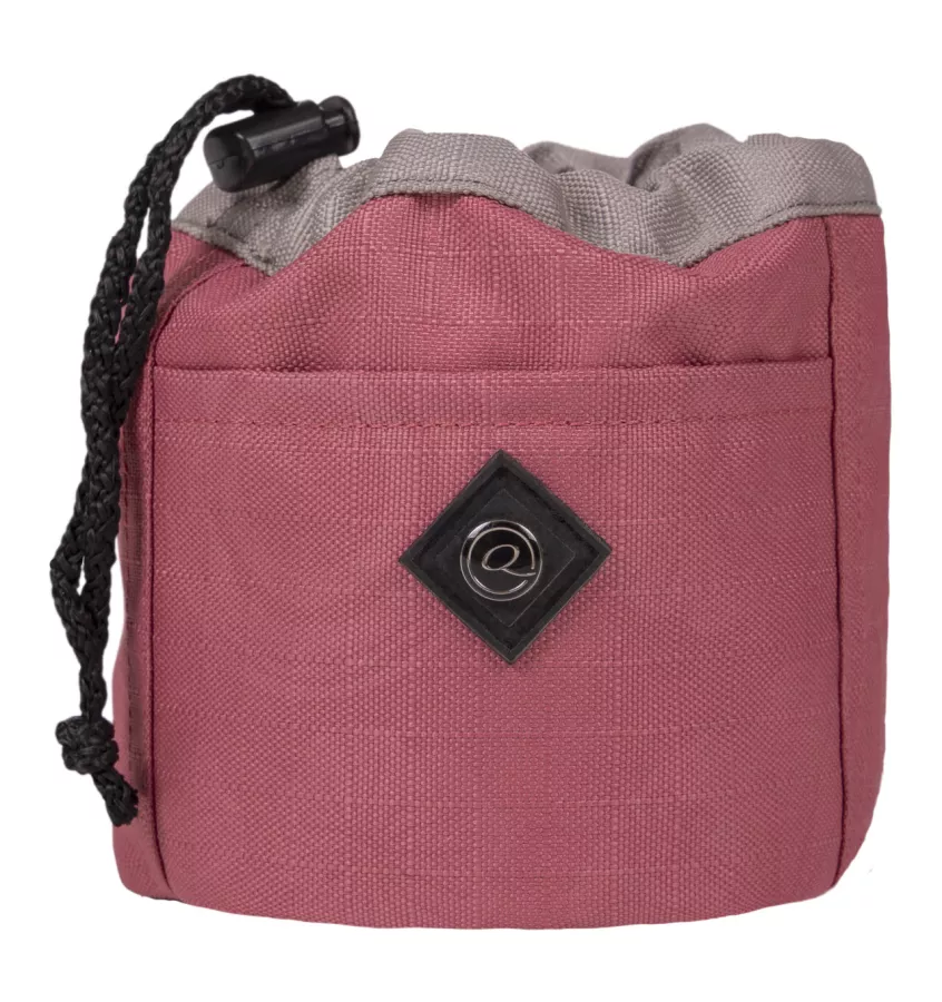 Poręczna torebeczka na smakołyki dla konia lub psa. Zamykana na ściągacz ze sznurkiem. Z przodu znajduje się dodatkowa mała kieszonka na rzep. Saszetkę można zaczepić o pasek lub na karabińczyk.