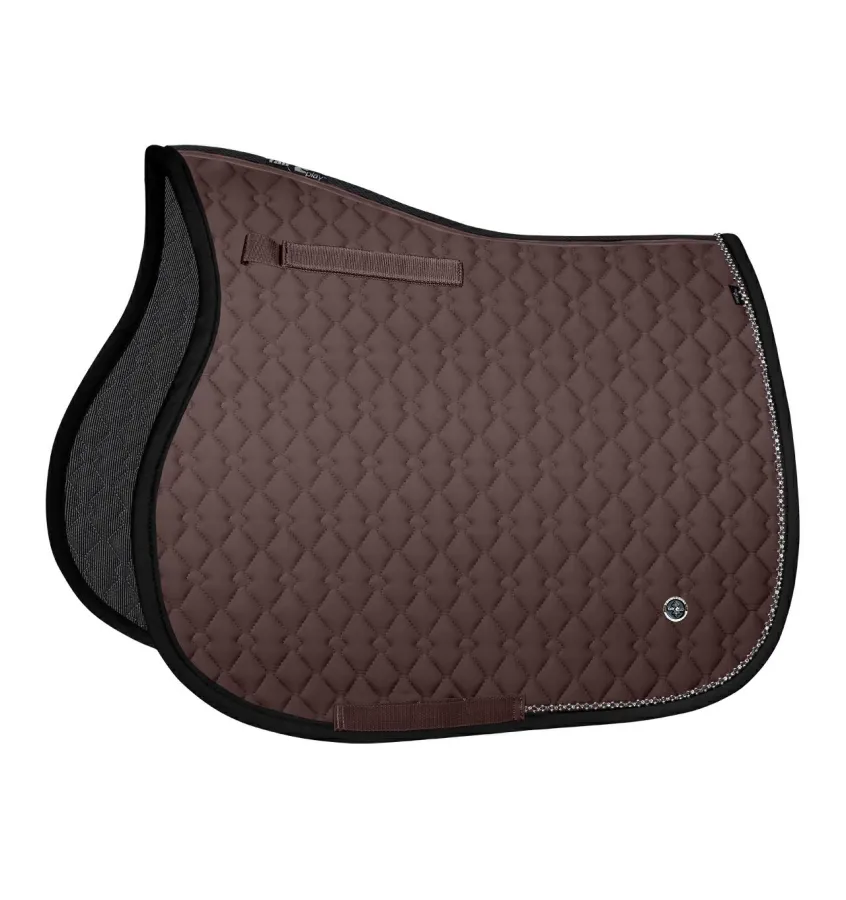 Elegancki czaprak jeździecki klasy premium, stworzony z myślą o maksymalnym komforcie konia i stylowym wyglądzie. Wyróżnia się najwyższą jakością wykonania oraz efektownym, starannym pikowaniem, które nadaje mu nowoczesny i atrakcyjny charakter. Model został ozdobiony subtelną, biżuteryjną taśmą w kolorze srebrnym, która podkreśla jego elegancję i sprawia, że doskonale prezentuje się zarówno podczas codziennych treningów, jak i na zawodach. Dodatkowym atutem jest stylowe logo Fair Play. Dla zapewnienia optymalnej wentylacji linia grzbietu została wykonana z innowacyjnej siatki 3D air mesh, która wspiera cyrkulację powietrza i pomaga utrzymać odpowiednią temperaturę podczas wysiłku. Wewnętrzna część czapraka podszyta jest miękkim materiałem poliestrowym z dodatkiem zaawansowanych włókien ceramicznych CERAMIC-tech™, które wspomagają ukrwienie oraz działają rozluźniająco na mięśnie konia, zwiększając jego komfort i regenerację. Praktyczne mocowania do uchwytów D-ring zapewniają stabilne ułożenie pod siodłem, zapobiegając przesuwaniu się czapraka w trakcie jazdy.