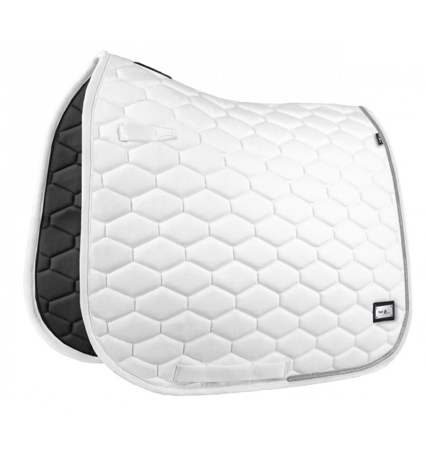 Czaprak Hexagon Crystal, bardzo elegancki wykonany z wysokiej jakości materiałów. Szybko wchłania wilgoć Anatomiczny krój zapewnia idealnie dopasowanie do grzbietu konia zapewniając mu maksymalny komfort. Delikatnie pikowany. Posiada mieniącą się lamówkę. Wyposażony w pasek na popręg oraz paski do przystuł zapinane na rzepy. Prosty w utrzymaniu czystości.