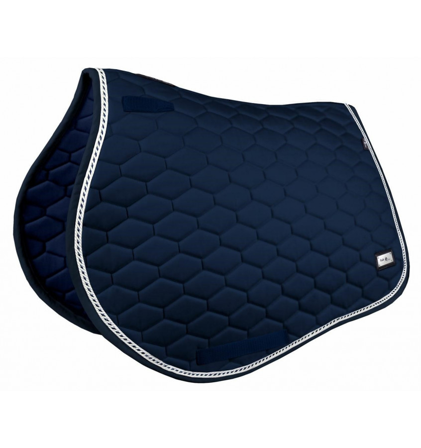 Czaprak Hexagon wykonany z wysokiej jakości materiałów. Bardzo elegancki, podszyty oddychającą i szybkoschnącą siateczkową podszewką. Posiada anatomiczny krój, który zapewnia idealne dopasowanie do grzbietu konia zapewniając mu maksymalny komfort. Delikatnie pikowany oraz ozdobiony kontrastową lamówką. Wyposażony w paski do przystuł oraz pasek na popręg. Prosty w utrzymaniu czystości.