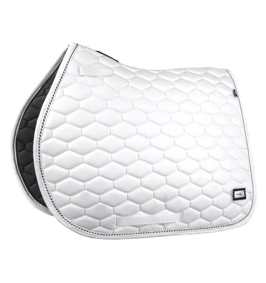 Czaprak Hexagon wykonany z wysokiej jakości materiałów. Bardzo elegancki, podszyty oddychającą i szybkoschnącą siateczkową podszewką. Posiada anatomiczny krój, który zapewnia idealne dopasowanie do grzbietu konia zapewniając mu maksymalny komfort. Delikatnie pikowany oraz ozdobiony kontrastową lamówką. Wyposażony w paski do przystuł oraz pasek na popręg. Prosty w utrzymaniu czystości.