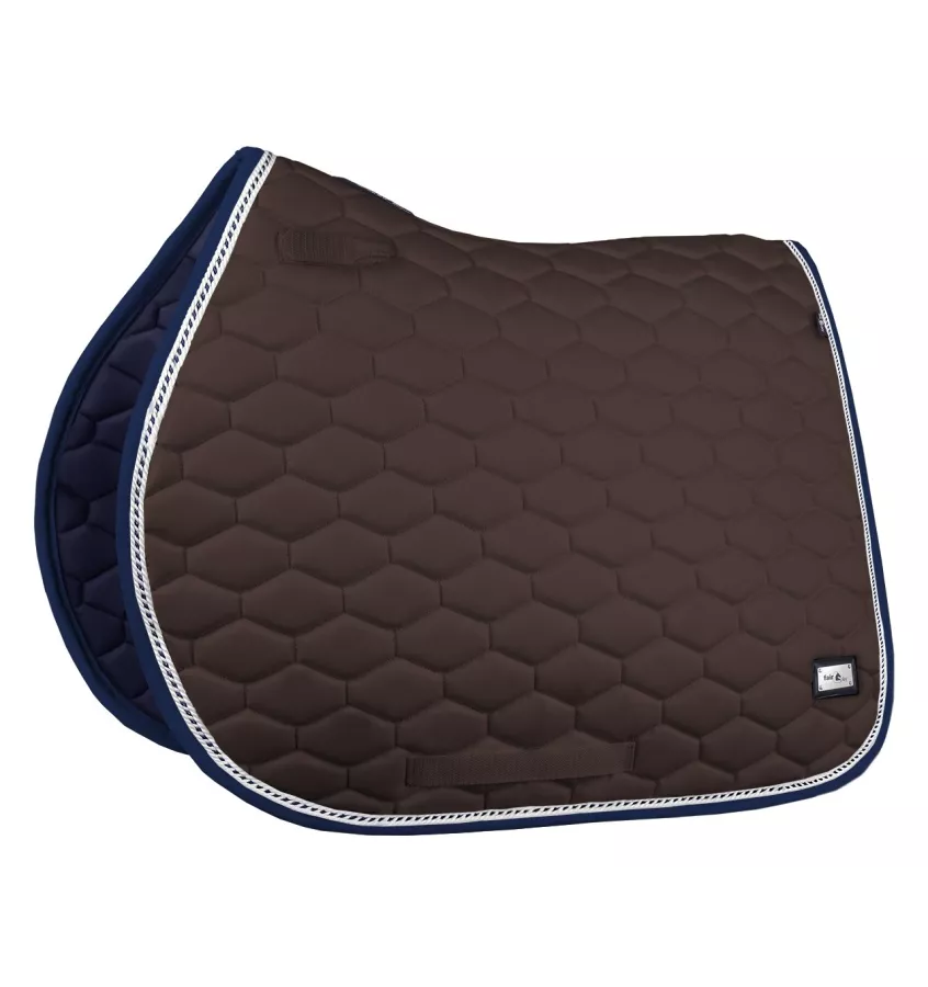 Czaprak Hexagon wykonany z wysokiej jakości materiałów. Bardzo elegancki, podszyty oddychającą i szybkoschnącą siateczkową podszewką. Posiada anatomiczny krój, który zapewnia idealne dopasowanie do grzbietu konia zapewniając mu maksymalny komfort. Delikatnie pikowany oraz ozdobiony kontrastową lamówką. Wyposażony w paski do przystuł oraz pasek na popręg. Prosty w utrzymaniu czystości.