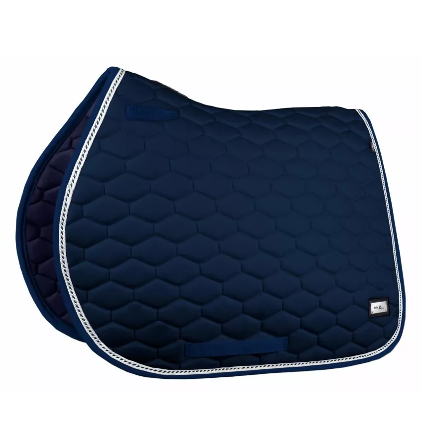 Czaprak Hexagon wykonany z wysokiej jakości materiałów. Bardzo elegancki, podszyty oddychającą i szybkoschnącą siateczkową podszewką. Posiada anatomiczny krój, który zapewnia idealne dopasowanie do grzbietu konia zapewniając mu maksymalny komfort. Delikatnie pikowany oraz ozdobiony kontrastową lamówką. Wyposażony w paski do przystuł oraz pasek na popręg. Prosty w utrzymaniu czystości.