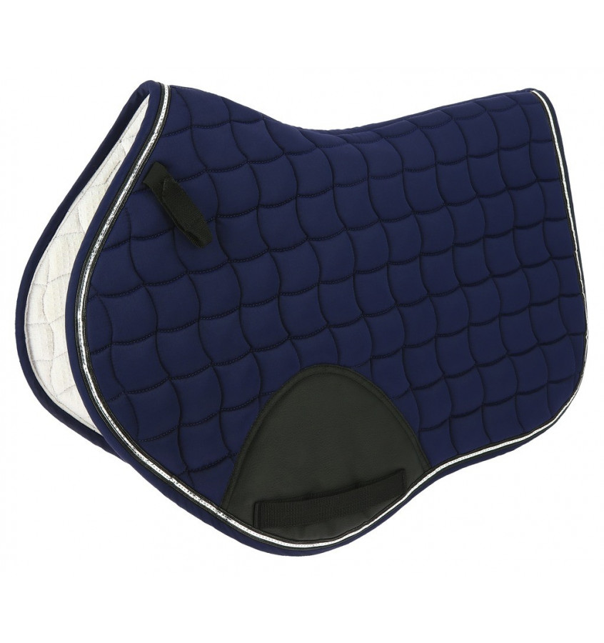 Czaprak wszechstronno skokowy z wypełnieniem 300g/m2. Dobrze amortyzuje wstrząsy, dzięki dodatkowej 6mm piance. Podszyty bawełnianą podszewką, która dobrze wchłania pot. Miejsce przy popręgu zostało dodatkowo wzmocnione.