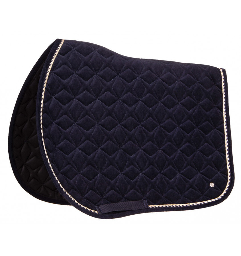 Elegancki aksamitny czaprak podszyty siateczką, która dobrze absorbuje pot. Wypełniony 5mm pianką oraz 300g poliestrem.