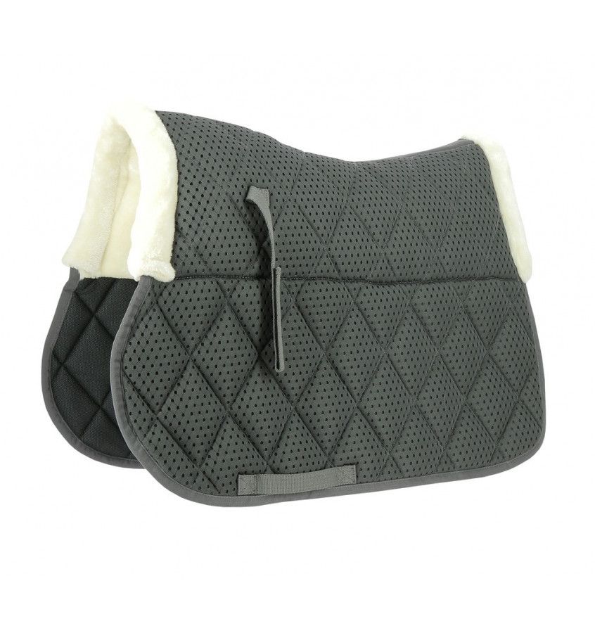 Czaprak wykonany z siateczki 3D mesh, która zapewnia dobrą cyrkulację powietrza. Wypełniony 10mm pianką oraz 200g/m2 polyfill. Podszyty do połowy sztucznym futerkiem.
