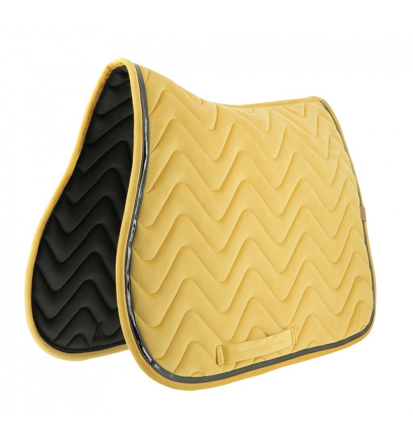 Czaprak o aksamitnym welurowym wykończeniu. Wypełnienie 200g/m2 polyfill. Zdobony lakierowaną lamówką.