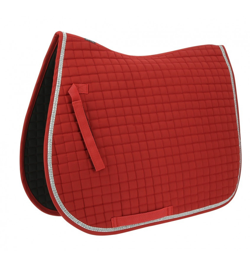Czaprak z anatomicznym krojem, który dobrze dopasuje się do grzbietu. Wypełnienie watowo-piankowe. Podszyty siateczką, która wchłania wilgoć. Zdobiony błyszczącą lamówką.
