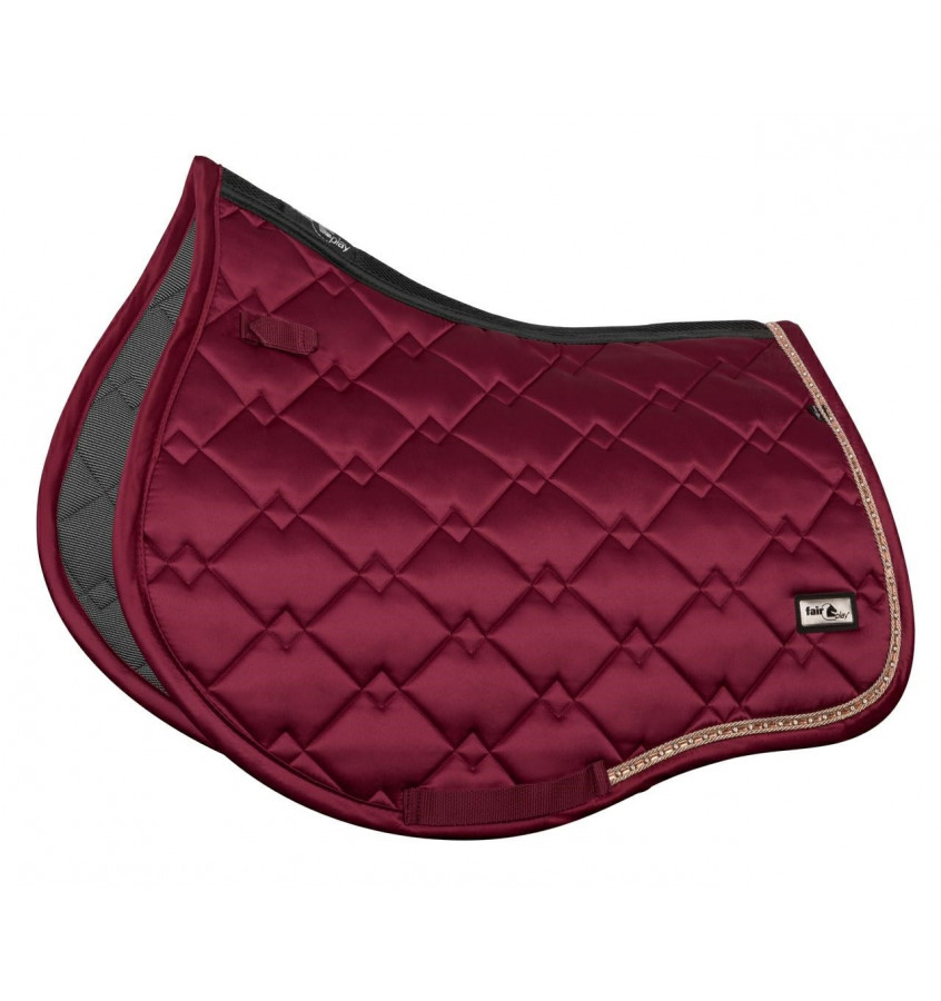 Najwyższej jakości, atrakcyjnie przepikowany czaprak wykonany z atłasu. Ozdobiony podwójnym, połyskującym sznurkiem i biżuteryjną taśmą w kolorze różowego złota. Linia grzbietu wykonana z siatki 3D air mesh dla lepszej cyrkulacji powietrza. Podszyty miękkim materiałem poliestrowym z domieszką specjalnych włókien ceramicznych - CERAMIC-tech™, które zapewniają lepsze ukrwienie oraz działaja rozlużniająco na mięśnie.