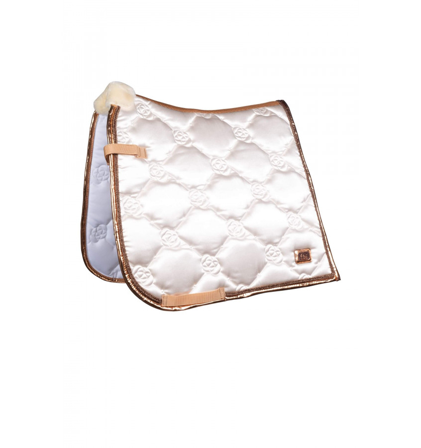 Czaprak pod siodło wykonany z oddychającego materiału. Szybko wchłania pot dzięki specjalnej siateczce od spodu. Podszyty miękkim futerkiem na kłębie. Wyposażony w paski do przystuł, które można odpiąć. Wypełnienie watowo-piankowe amortyzuje wstrząsy. Anatomiczny krój dobrze leży na grzbiecie. Nietypowe pikowanie czyni go wyjątkowym.