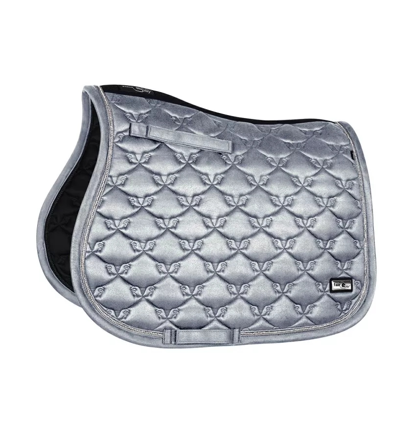Najwyższej jakości czaprak wykonany z luksusowej, oddychającej tkanina zamszowej. Linia grzbietu wykonana została z siatki 3D air mesh dla lepszej cyrkulacji powietrza . Profilowany, anatomiczny kształt zapewnia idealne dopasowanie do grzbietu konia. Podszyty oddychającą i szybkoschnącą podszewką. Pikowany w duże romby z motywem końskim, ozdobiony podwójnym sznurkiem oraz metalowym łańcuszkiem z kryształkami. Ozdobiony logo Fair Play