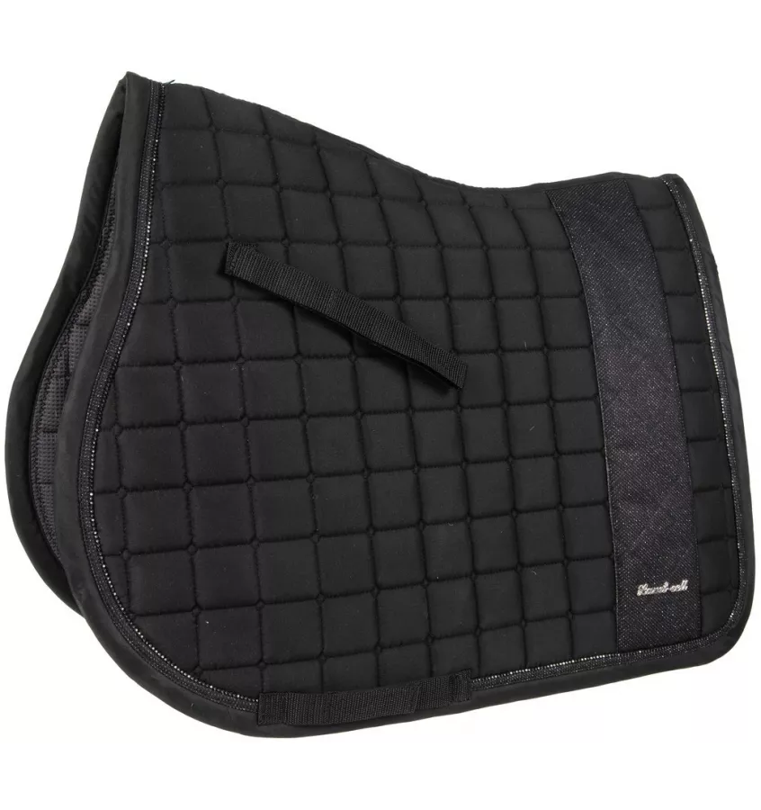 Czaprak pod siodło z wykończeniem z mikrofibry i błyszczącym pionowym paskiem.