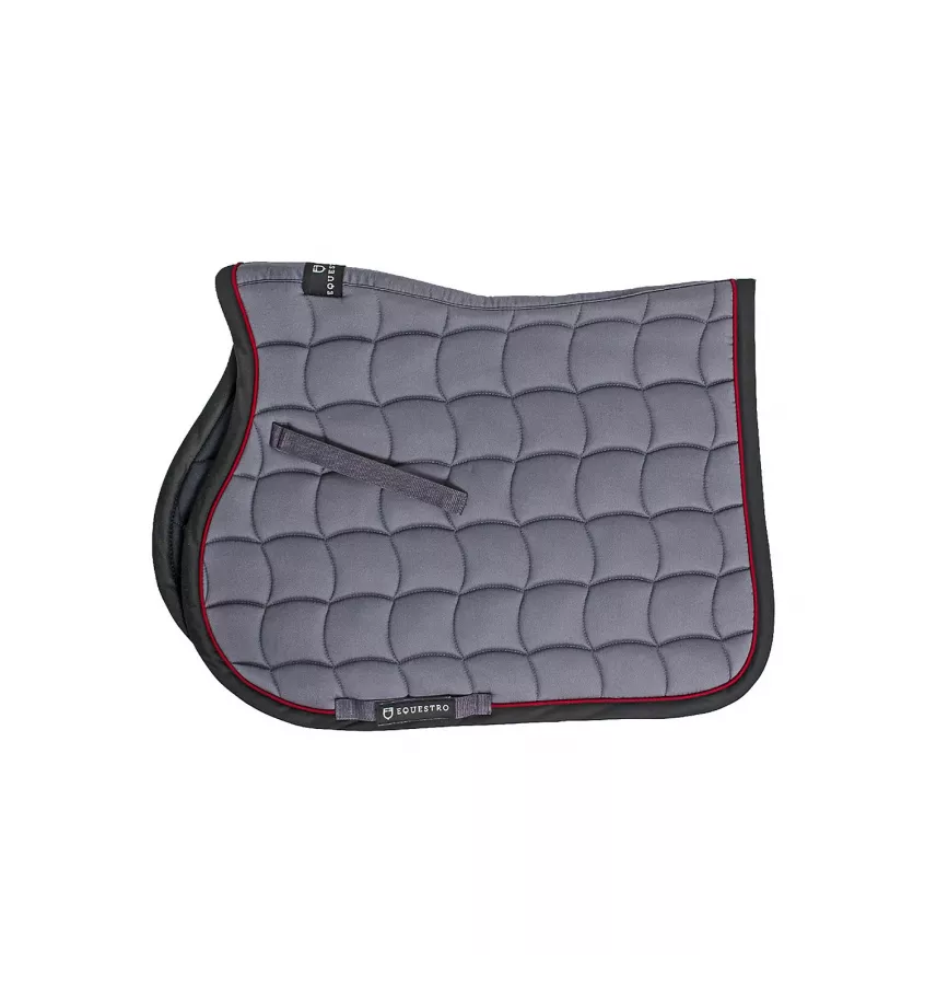 Czaprak skokowy wykonany z bawełny, dzięki czemu nadaje się na każdą porę roku, zapewniając jednocześnie doskonałą oddychalność. Lekka wyściółka zapewnia efektywne rozłożenie ciężaru na grzbiecie konia. Czaprak został wykonany zgodnie z anatomicznym kształtem zwierzęcia. Łagodzi wszelkiego rodzaju dyskomfort, a przede wszystkim zapewnia brak ucisku i tarcia na kłębie. Czaprak ozdobiony kontrastową lamówką w różnych kolorach oraz naszywką z logo Equestro i napisem na kłębie.