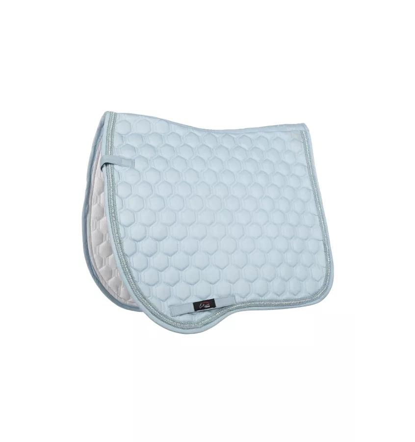 Czaprak dla konia Elisa wyprofilowany anatomicznie do lini grzbietu konia. Wykonany z oddychających materiałów i podszyty siateczkę, która wchłania pot i odprowadza wilgoć na zewnątrz. Pikowany w modny wzór. Zdobiony lamówką i błyszczącymi kryształkami.