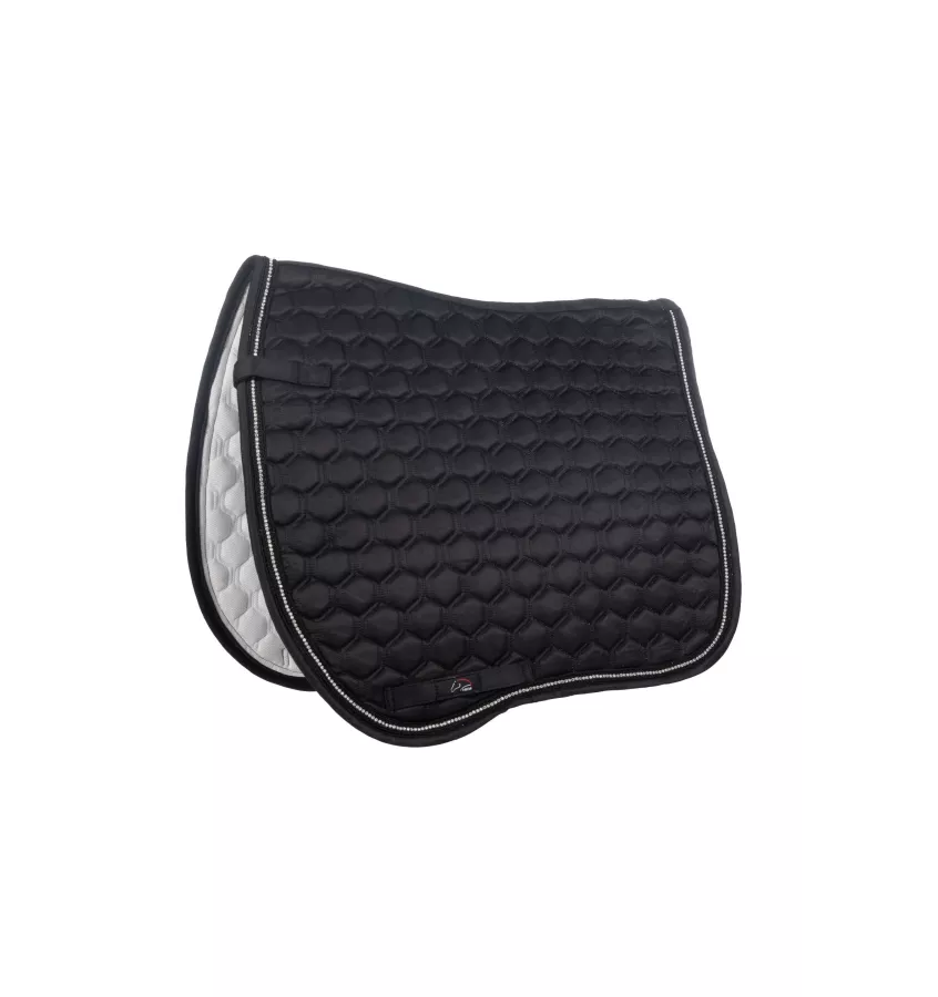 Czaprak dla konia Elisa wyprofilowany anatomicznie do lini grzbietu konia. Wykonany z oddychających materiałów i podszyty siateczkę, która wchłania pot i odprowadza wilgoć na zewnątrz. Pikowany w modny wzór. Zdobiony lamówką i błyszczącymi kryształkami.