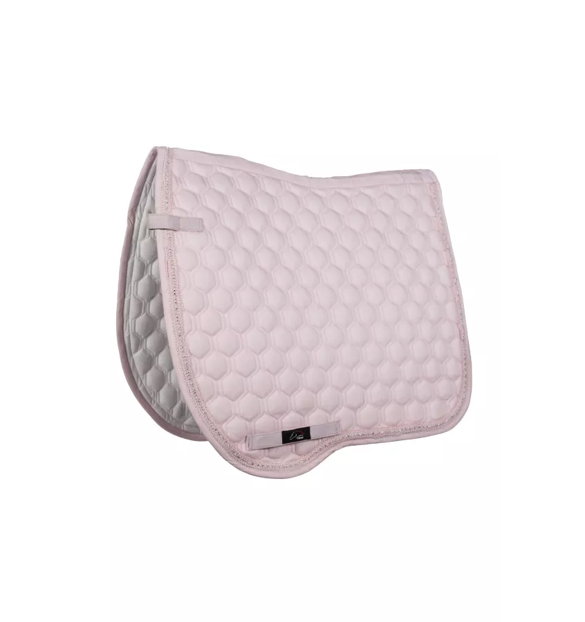 Czaprak dla konia Elisa wyprofilowany anatomicznie do lini grzbietu konia. Wykonany z oddychających materiałów i podszyty siateczkę, która wchłania pot i odprowadza wilgoć na zewnątrz. Pikowany w modny wzór. Zdobiony lamówką i błyszczącymi kryształkami.