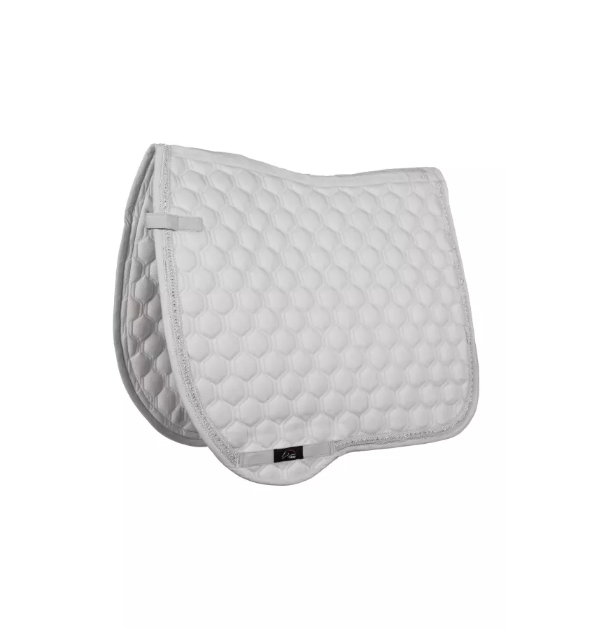 Czaprak dla konia Elisa wyprofilowany anatomicznie do lini grzbietu konia. Wykonany z oddychających materiałów i podszyty siateczkę, która wchłania pot i odprowadza wilgoć na zewnątrz. Pikowany w modny wzór. Zdobiony lamówką i błyszczącymi kryształkami.