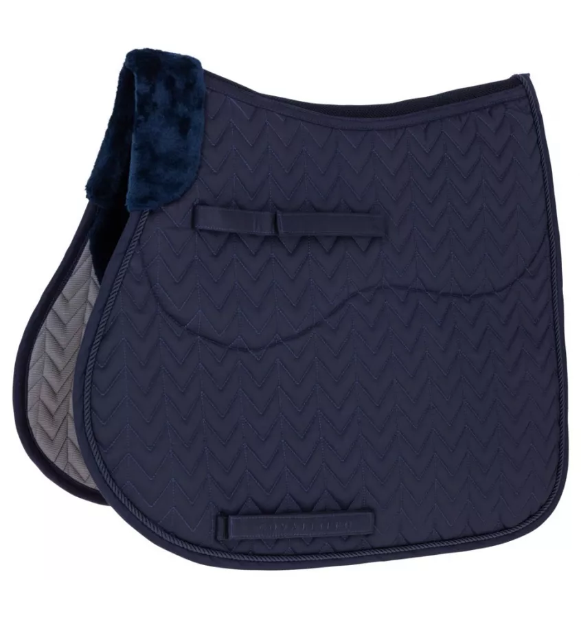 Wysokiej jakości czaprak z futerkową podkładką. Posiada kanał wykonany z siatki, który zapewnia wentylację i cyrkulację powietrza. Podszyty szybkoschnącym materiałem z włókien wiskozy bambusowej. Anatomiczny kształt.