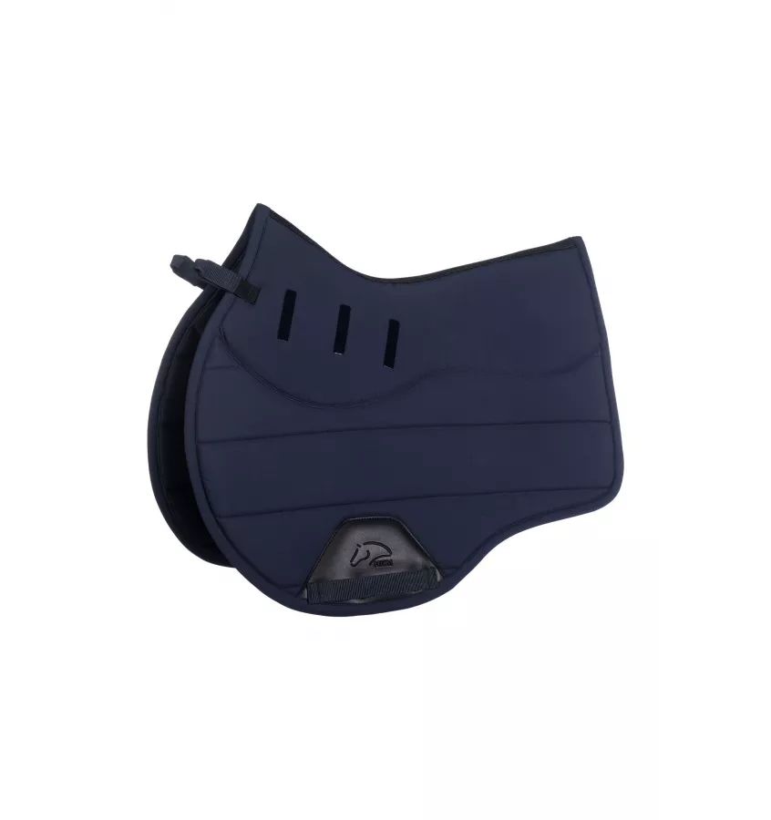 Czaprak wykonany z materiału oddychającego o anatomicznym kroju z dużą ilością miejsca na kłąb. Wzdłuż grzbietu zastosowano materiał 3D Mesh, który zapewnia cyrkulację powietrza. W miejscu siodła znajdują się silikonowe nadruki, które zapobiegają przesuwaniu siodła.