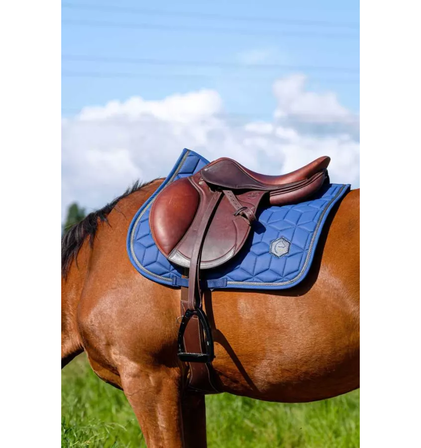 Czaprak o anatomicznym kształcie. Stylowe pikowanie. Wypełnienie 200 g Polyfil i pianka 8 mm. Podszyty komfortową siateczką CoolMax.