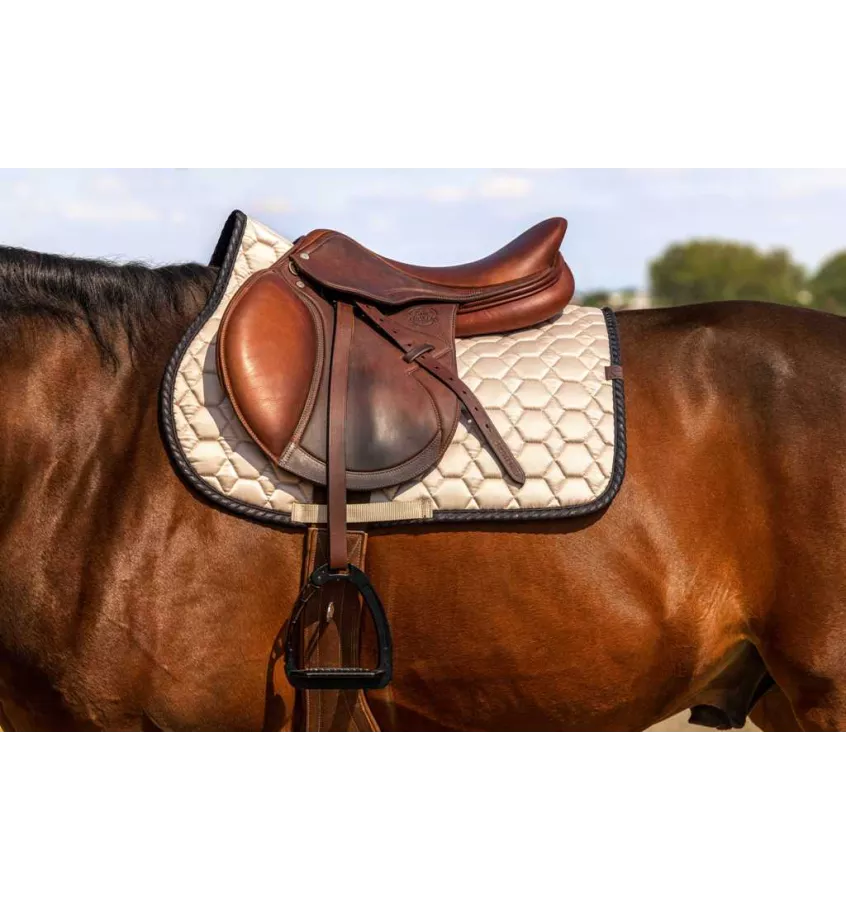 Efekt satyny dla eleganckiego wykończenia. Niezwykle wygodny i oddychający: Czarna podszewka o strukturze plastra miodu i pikowanie o grubości 8 mm z wypełnieniem poliestrowym 200 g zapewniają skuteczną amortyzację. Wyrafinowany design: Satynowa tkanina ze 100% poliestru z delikatnym, błyszczącym splotem i lśniącym, plecionym splotem.