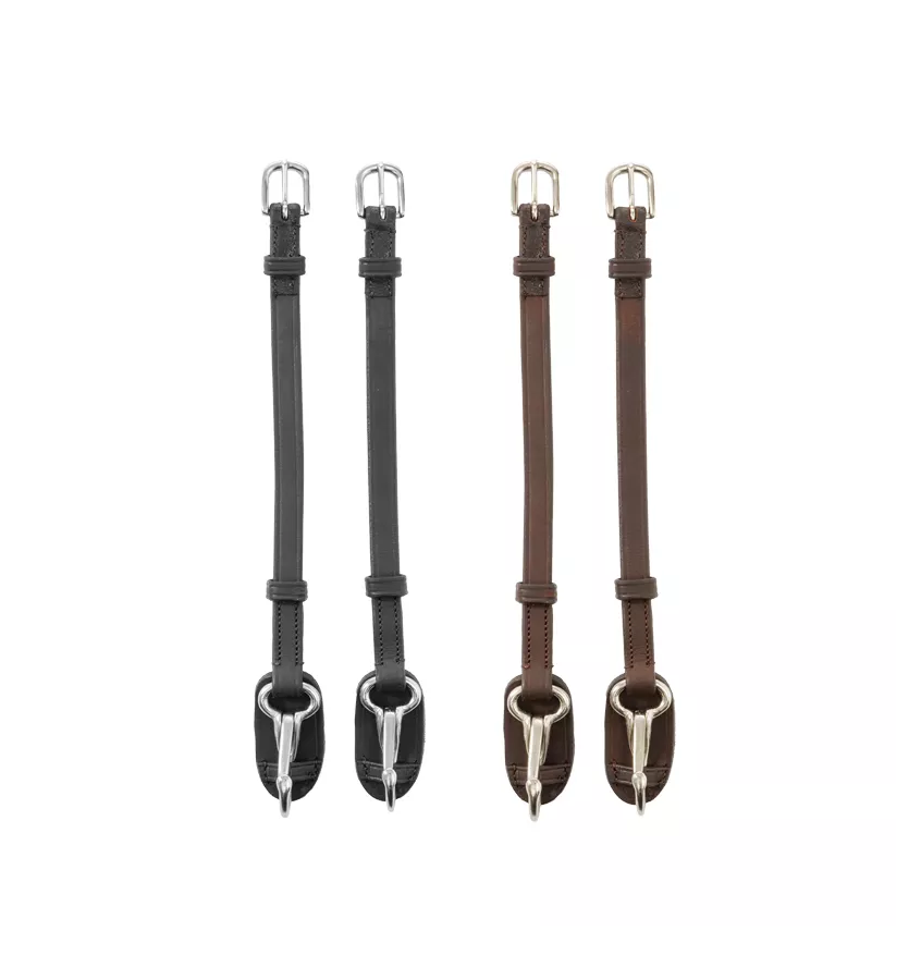 Wymienne paski wędzidłowe zakończone karabińczykami, które ułatwiają wymianę wędzideł. Ze skóry olejowanej.
