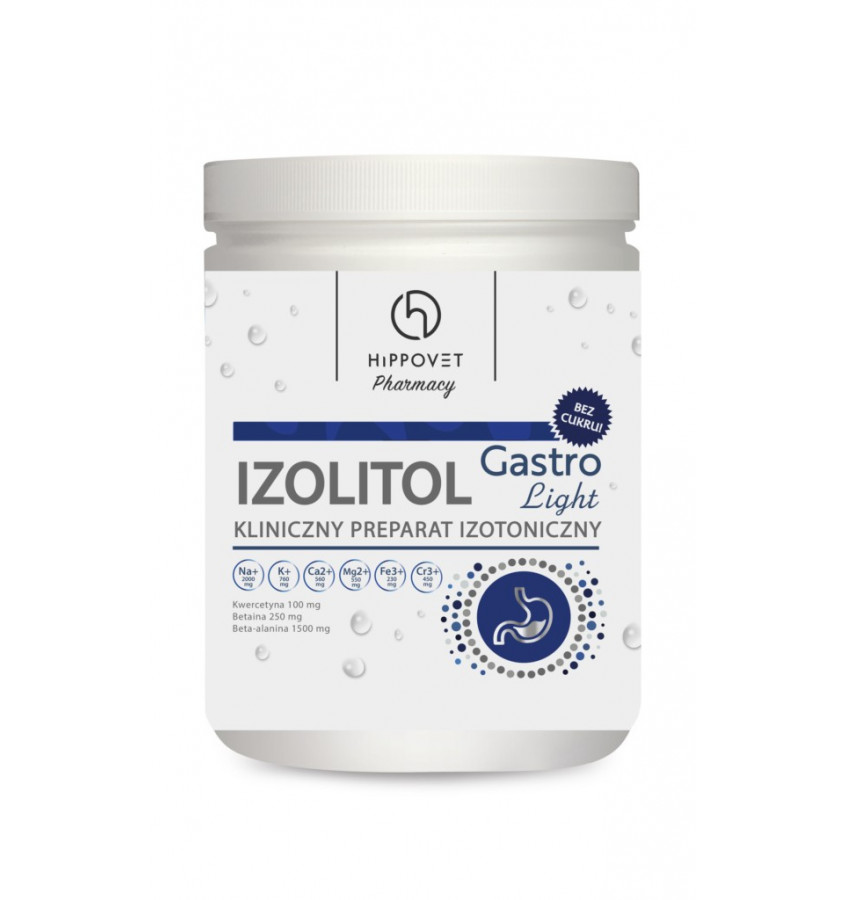 IZOLITOL Gastro Light to kliniczny preparat izotoniczny bez cukru przeznaczony dla koni wrzodowych oraz z syndromem metabolicznym. Idealnie nadaje się do wyrównania utraconych elektrolitów w trakcie treningów sportowych, dla koni o nadmiernej potliwości, z objawami odwodnienia oraz jako preparat pomocniczy w trakcie leczenia klinicznego.