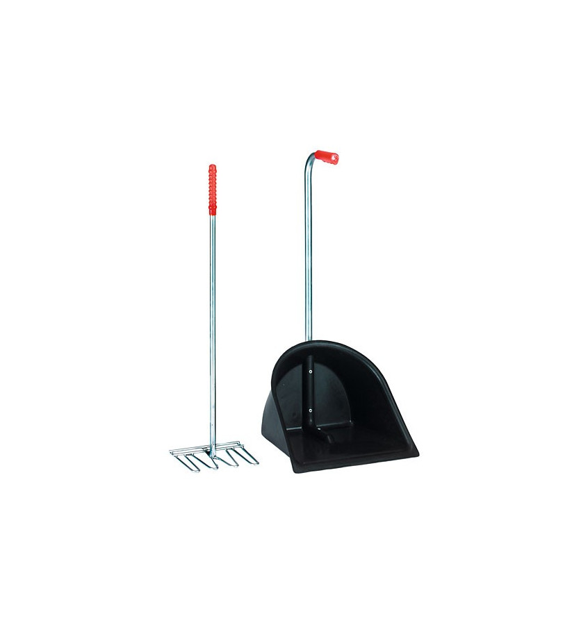 Zestaw do sprzątania boksów, przyczep itp. Zestaw zawiera grabki i poręczną szufelkę.