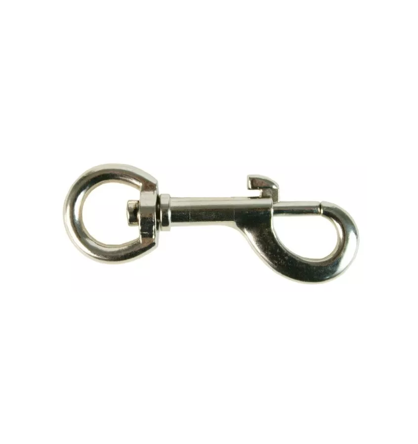Z okrągłym oczkiem i krętlikiem. Wykonany ze stopu cynku, niklowany.