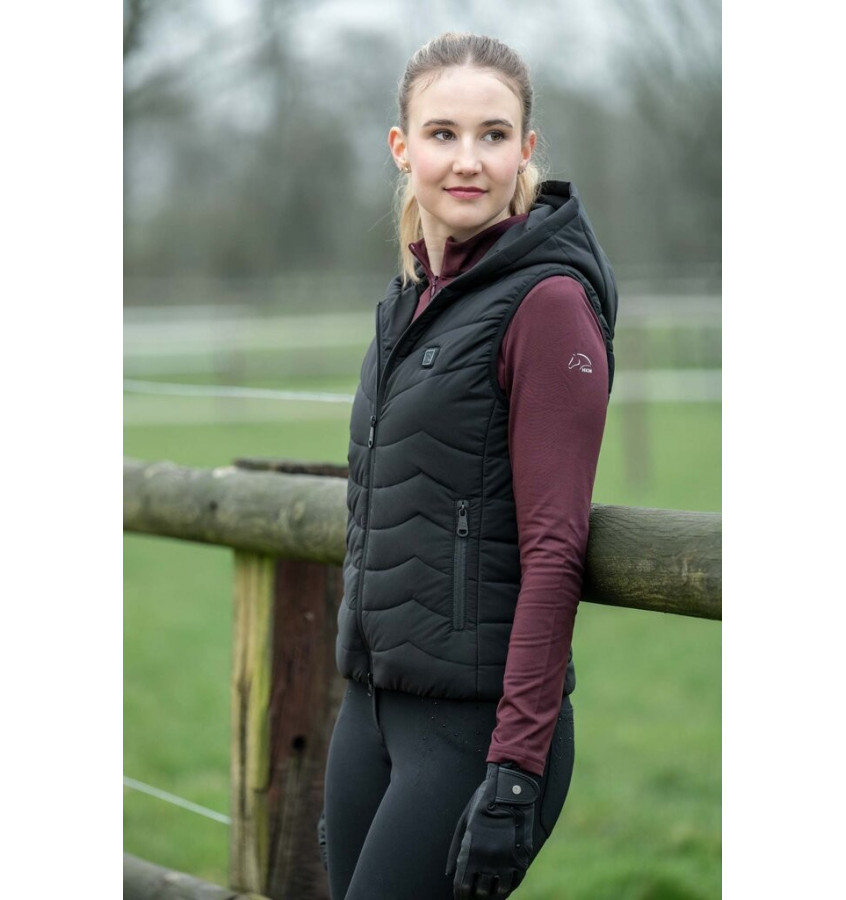 Innowacyjna kamizelka grzejąca, która zapewni Ci przyjemne i ciepłe pobyty w stajni i nie tylko! Posiada wbudowane panele grzewcze w górnej części. Kamizelka zasilana jest za pomocą powerbanka, który jest zawarty w zestawie. Na piersi znajduje się przycisk, który uruchamia grzanie. Wykonana jest z gładkiego i przyjemnego dla ciała materiału poliestrowego. Wysoki kołnierz chroni przed wiatrem. Kaptur można odpiąć.