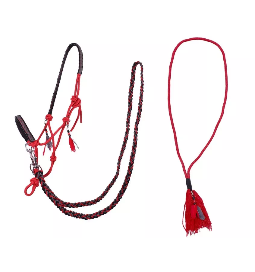 Kantar z odpinanymi wodzami i sznurkiem na szyję Liberty. Oba przedmioty nadają się do naturalnego jeździectwa lub jazdy bez ogłowia. Wykonane z solidnych materiałów.