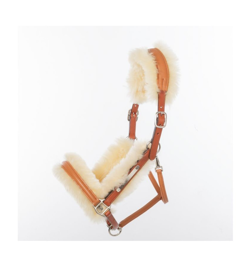 Kantar wykonany z najwyższej jakości miękkiej skóry. Podszyty miękkim owczym futerkiem. Regulowany w części nosowej oraz potylicznej po obydwu stronach za pomocą klamry.