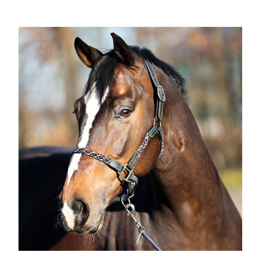 Kantar, który łączy ze sobą elementy skórzane z plecioną liną w różnych kolorach. Pięknie prezentuje się na każdym koniu. Posiada możliwość regulacji w trzech miejscach.