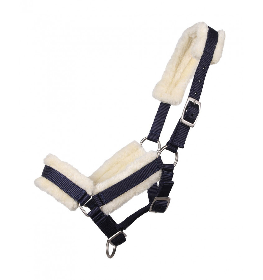 Kantar dla źrebaka podszyty syntetycznym futerkiem. Regulacja w 3 punktach pozwala na dobre dopasowanie do głowy konia.
